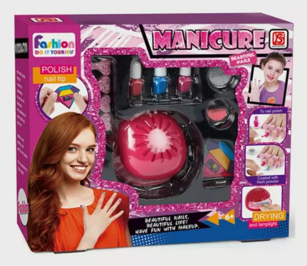 دلعي بنوتك مع لعبة صالون الاظافر والمناكير. هذي العدة الكاملة تخليها فنانة اظافر في بيتها. تقدر تبدع وتزين اظافرها وتوري صديقاتها فنها. اللعبة تنمي ابداعها وتخليها تعتمد على نفسها. مجموعة متكاملة للبنات فيها كل شي مجفف مناكير وقلم تزيين وقلم غبار كهربائي وعلبة ظلال بستة الوان ومبرد اظافر واستنسل ونوعين جليتر وفواصل اصابع وستيكرات واربع الوان مناكير ولصقات اظافر وثمانية اظافر تركيب. احسن هدية للبنات. (البطاريات ما تجي معها).