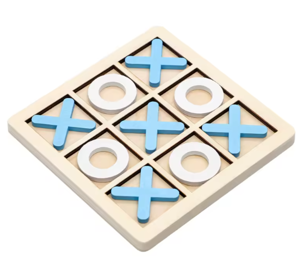 اللعبة الكلاسيكية اللي الكل يعرفها "اكس او" بس بشكل خشبي فخم ومرتب. لعبة ذكاء وتفكير سريع، اللي يصف ثلاثة ورا بعض هو الفايز. حجمها وسط وممتاز، وشكلها حلو وتقدر تخليها كقطعة ديكور بعد. لعبة بطلة تجمع العايلة والاصحاب وتسلي الكبار والصغار.