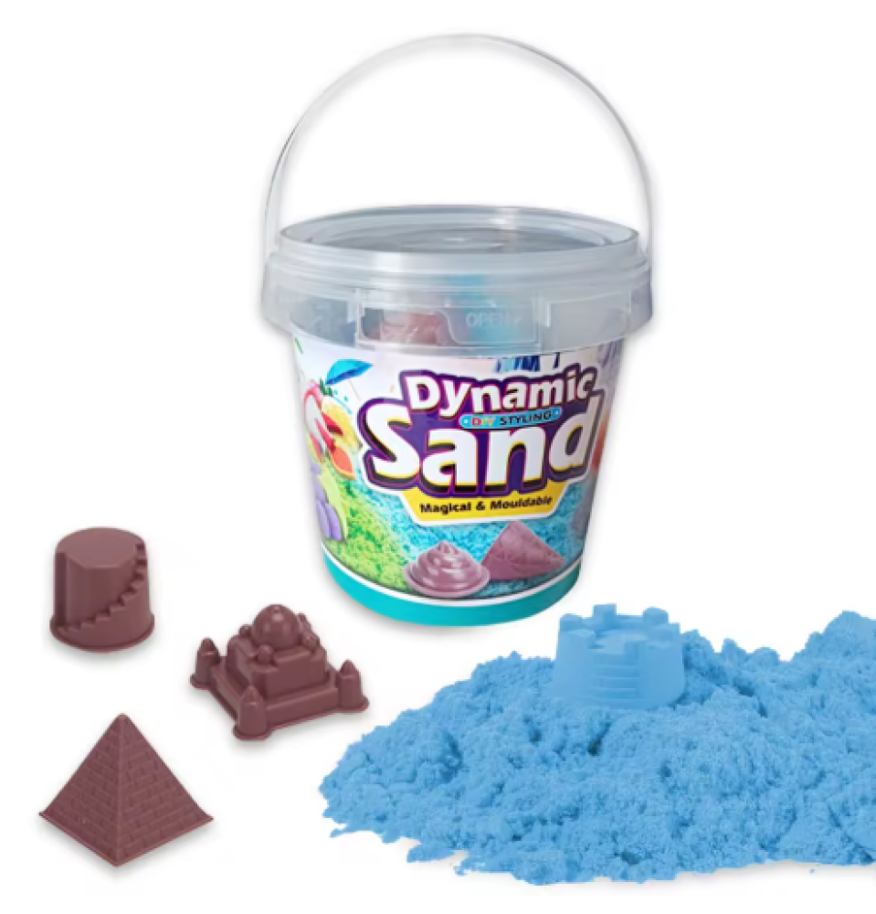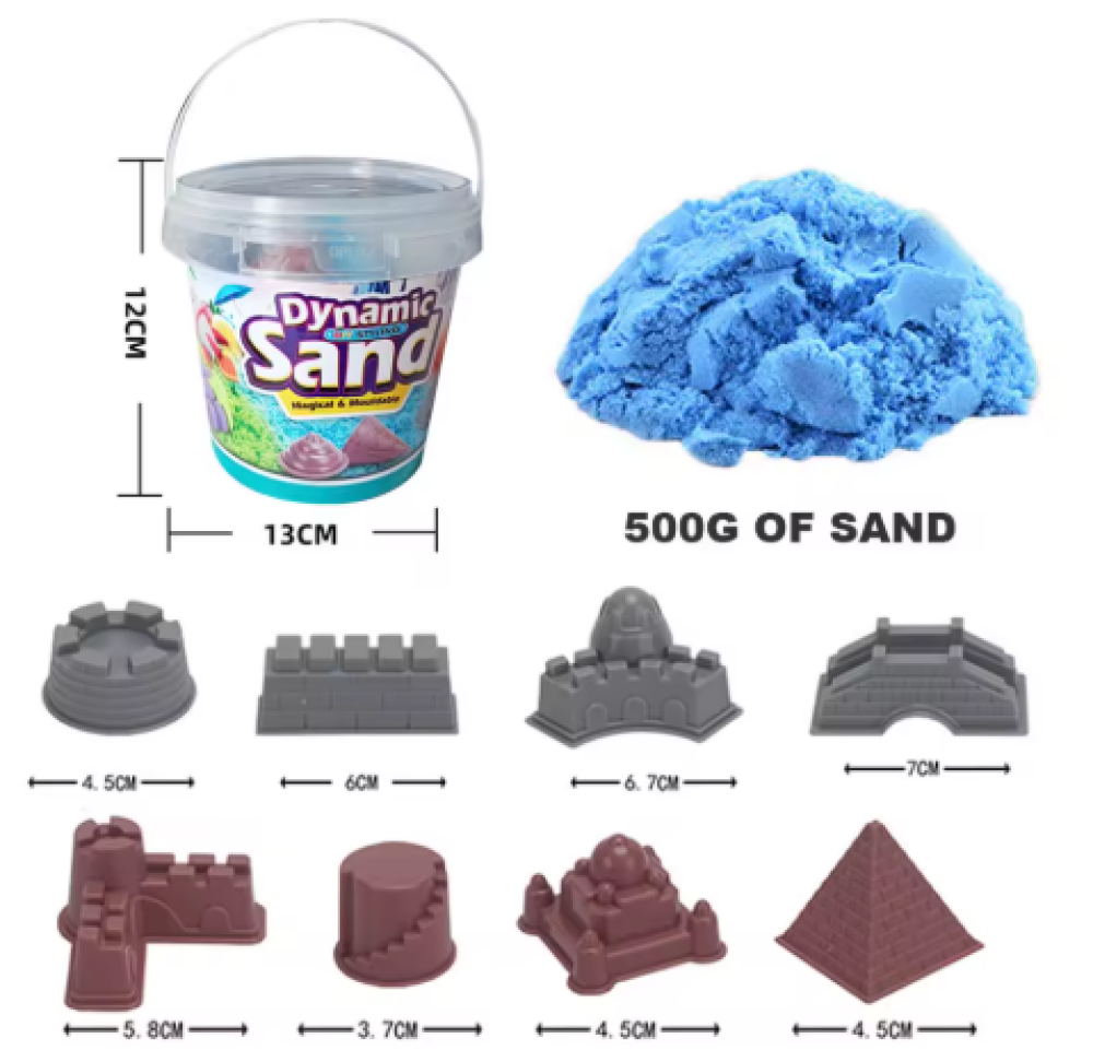 جبنا البحر لعيالك في البيت. الرمل السحري هذا كأنه رمل بحر صدقي بس ما يوصخ ولا يحوس الدنيا. يجي في سطل وفيه الوان كثيرة تفتح النفس. يقدرون عيالك يبنون قلاع واشكال وكل اللي يبونه. لعبة رهيبة تنمي مهاراتهم وتخليهم يبدعون.