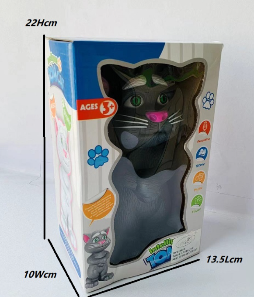 لعبة قط متكلم تعليمية للأطفال بحجم 8 بوصة، تصميم واقعي ينطق الكلمات ويشغل موسيقى وقصص ممتعة تساعد على تنمية مهارات الطفل. مناسبة كهدية تعليمية وترفيهية للأطفال داخل المنزل.
