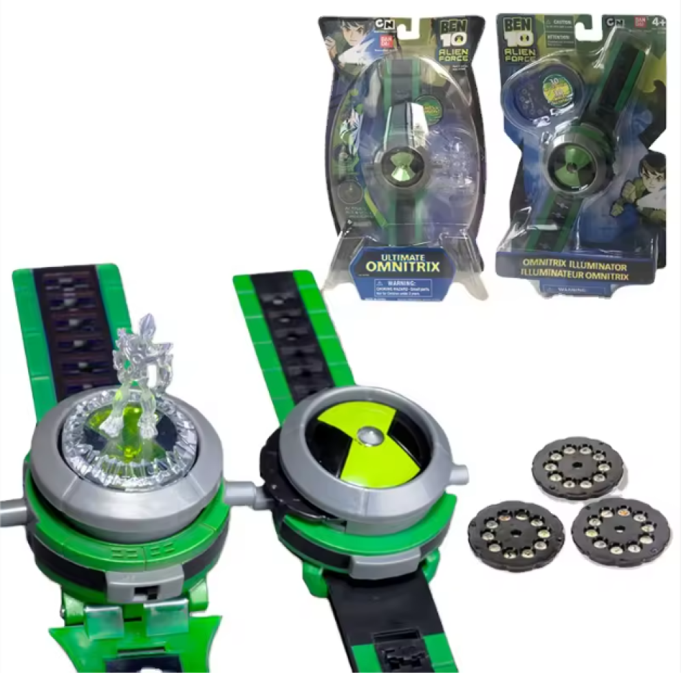 الحين ولدك يقدر يصير زي بن تن مع ساعة الاومنيتركس الرهيبة. هذي الساعة مو اي ساعة. بس يشغلها ويلف القرص وتطلع انوار واصوات اكشن. والاحلى من كذا يقدر يركب فيها شخصيات الوحوش والساعة تعرض صورتهم على الجدار. لعبة بطلة تخلي ولدك يعيش جو المغامرة.