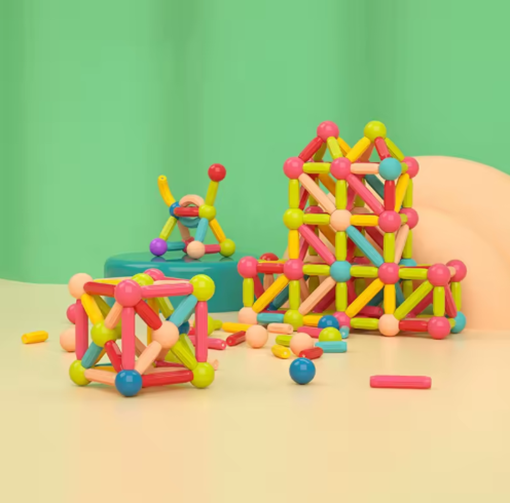 خل ولدك يبني ويبدع مع لعبة المكعبات المغناطيسية. يقدر يشبك القطع في بعضها بسهولة عن طريق المغناطيس ويسوي اشكال وبيوت وابراج وكل اللي في خياله. هذي اللعبة مو بس تسلية، تراها تنمي ذكاء الطفل وتزيد قدرته على التركيز والابداع. مصنوعة من بلاستيك قوي ومغناطيس آمن.