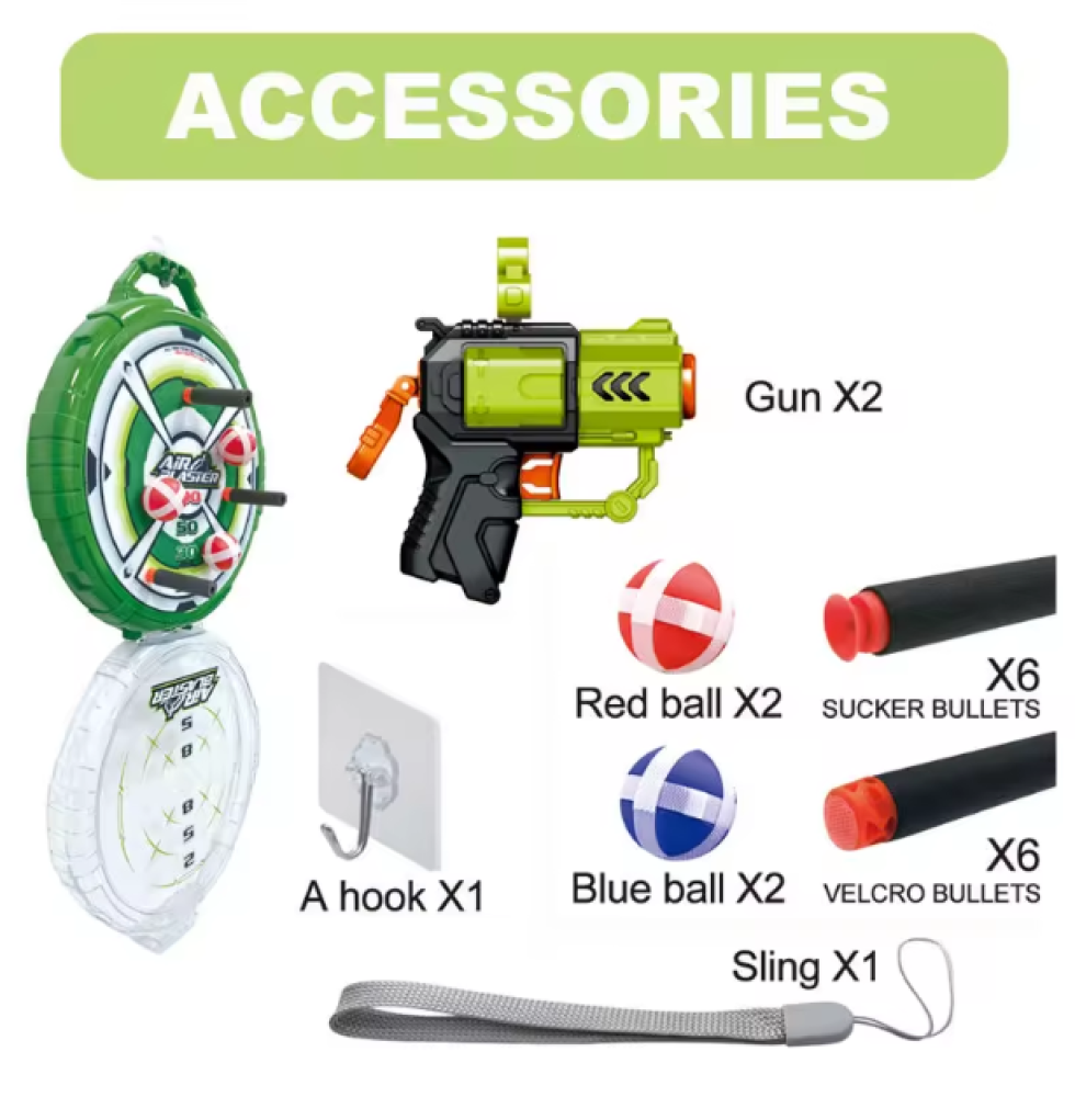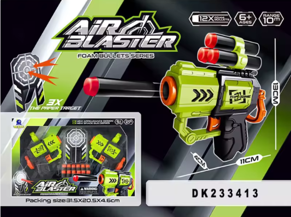 وقت الاكشن والتحدي. مع مسدس الطلقات الاسفنجية هذا بتكون اللعبة كلها حماس ومنافسة. يطلق طلقات فلين آمنة ما تأذي. مصنوع من بلاستيك قوي وامن (ABS) يعني يتحمل الكرف واللعب. انسب هدية للعيال اللي يحبون العاب التحدي والحركة.