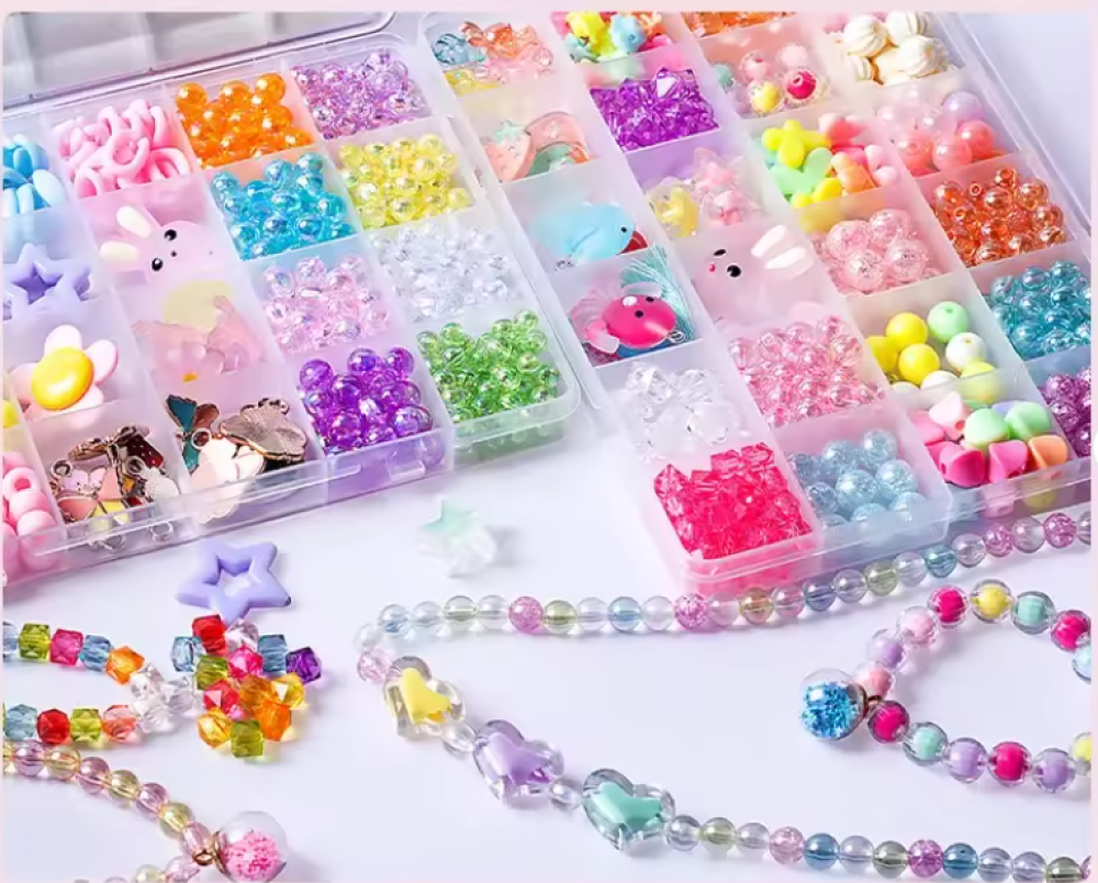 مجموعة خرز تعليمية DIY لصناعة الأساور والمجوهرات، تحتوي على خرز حروف ملون يساعد الأطفال على التعلم والابتكار. مناسبة لتنمية المهارات الحركية والإبداع، وخيار ممتاز للعب التعليمي والهدايا.