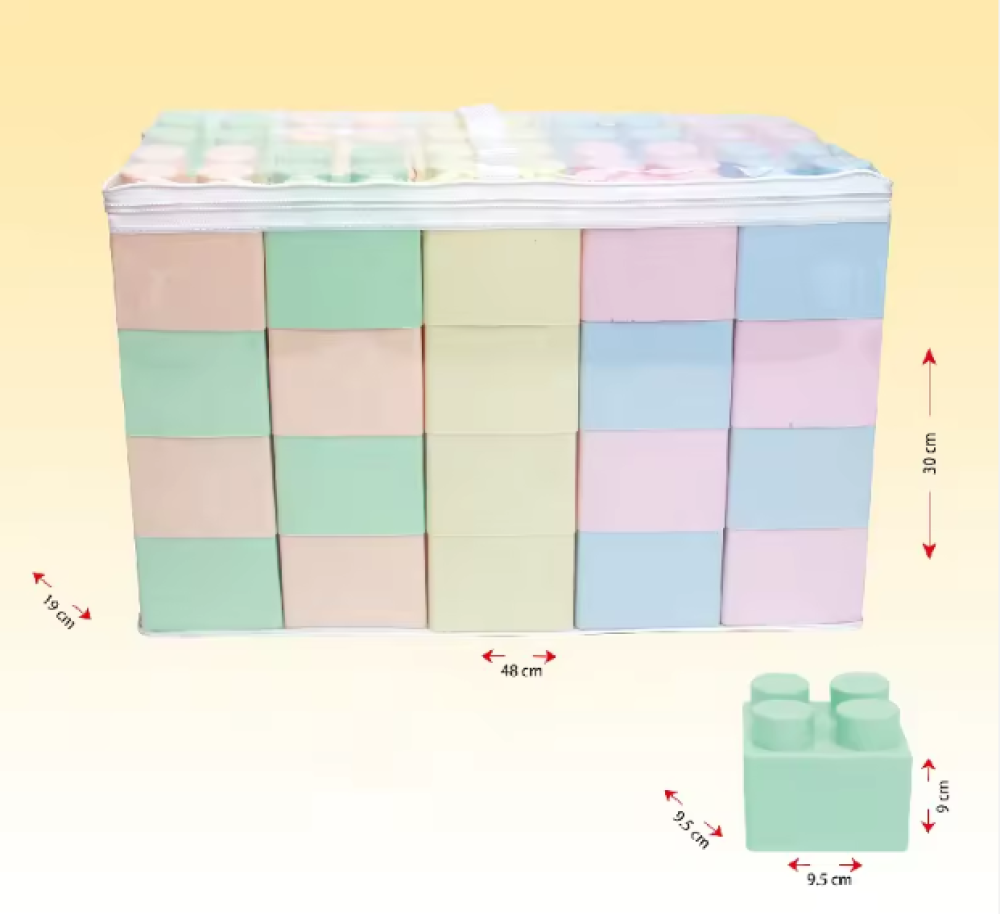 وقت البنا والابداع. هذي مجموعة مكعبات تركيب تجي 6 قطع في شنطة مرتبة. خل ولدك يبني ابراج وبيوت ويتعلم الاشكال. والاحلى ان الوانها هادية وحلوة (الوان الماكرون). مصنوعة من بلاستيك آمن وقوي. وبعد ما يخلص لعب، يجمعها كلها في الشنطة عشان ما تضيع ولا تحوس. هدية ممتازة للاطفال الصغار.